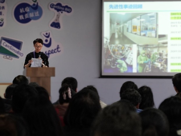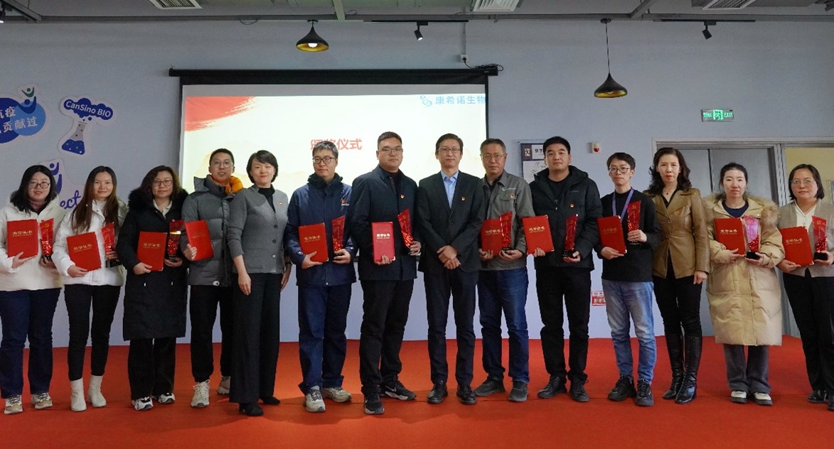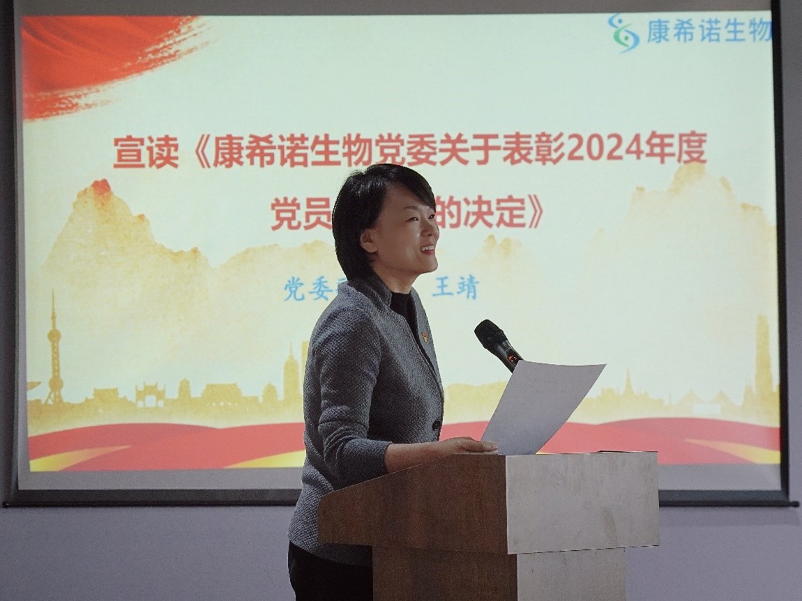 党委副书记王靖宣读《康希诺生物党委关于表彰2024年度党员先锋岗的决定》,并同与会领导为受表彰同志颁发奖杯和证书。