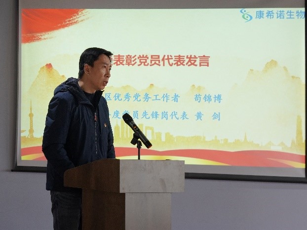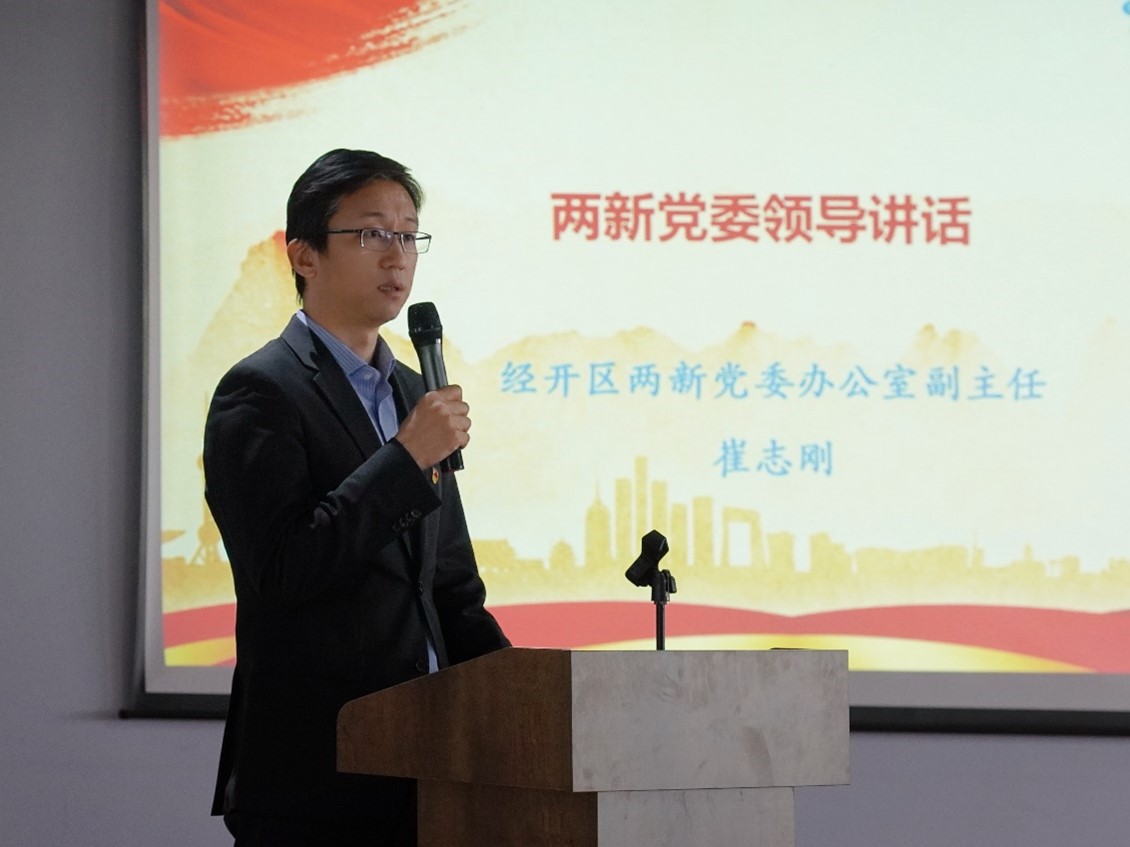 经开区两新党委办公室副主任崔志刚同志对公司党委的成绩给予了高度评价,同时围绕坚持学习、勇于创新、甘于奉献三个方面对企业开展党建工作和发挥党员模范带头作用提出了希望,为解决生物医药领域难题贡献中国力量和中国智慧,更好应对世界百年未有之大变局。